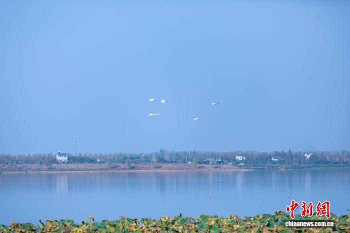 成群的候鸟在金湖国家湿地公园翱翔。许俊富 摄