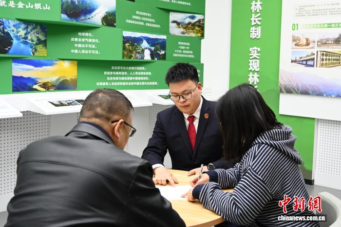 宜昌市长阳土家族自治县法院法官指导案件当事人认购林业碳汇(资料图)。聂莹 摄