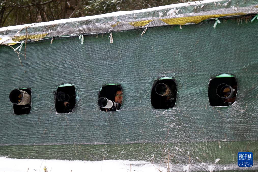 1月20日,在神农架林区红坪镇温水村,观鸟爱好者们在观鸟点位拍鸟。