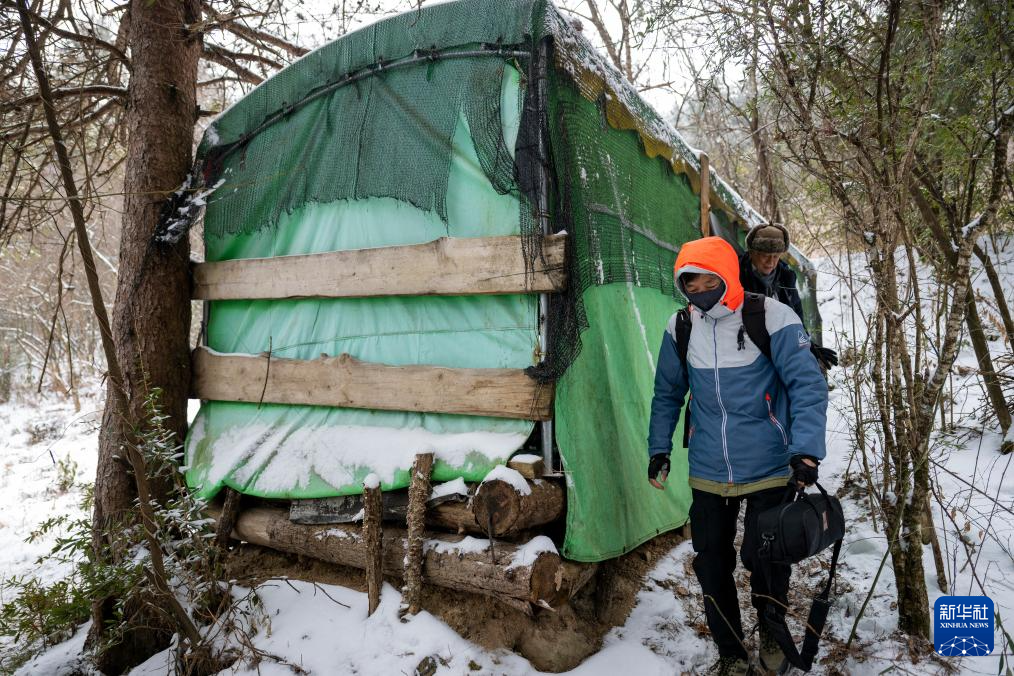 1月20日,在神农架林区红坪镇温水村,一名观鸟爱好者拍摄完成后离开拍摄点。