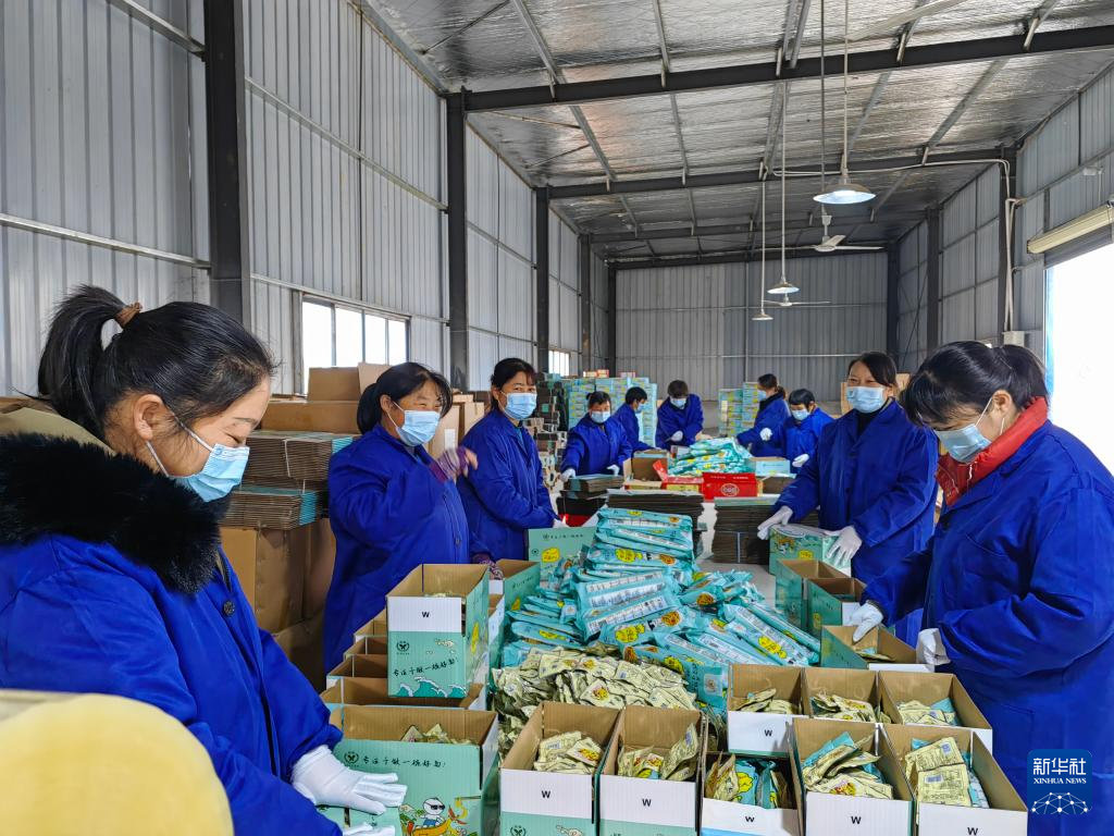 村民正在加工厂包装产品。(红安县委宣传部供图)