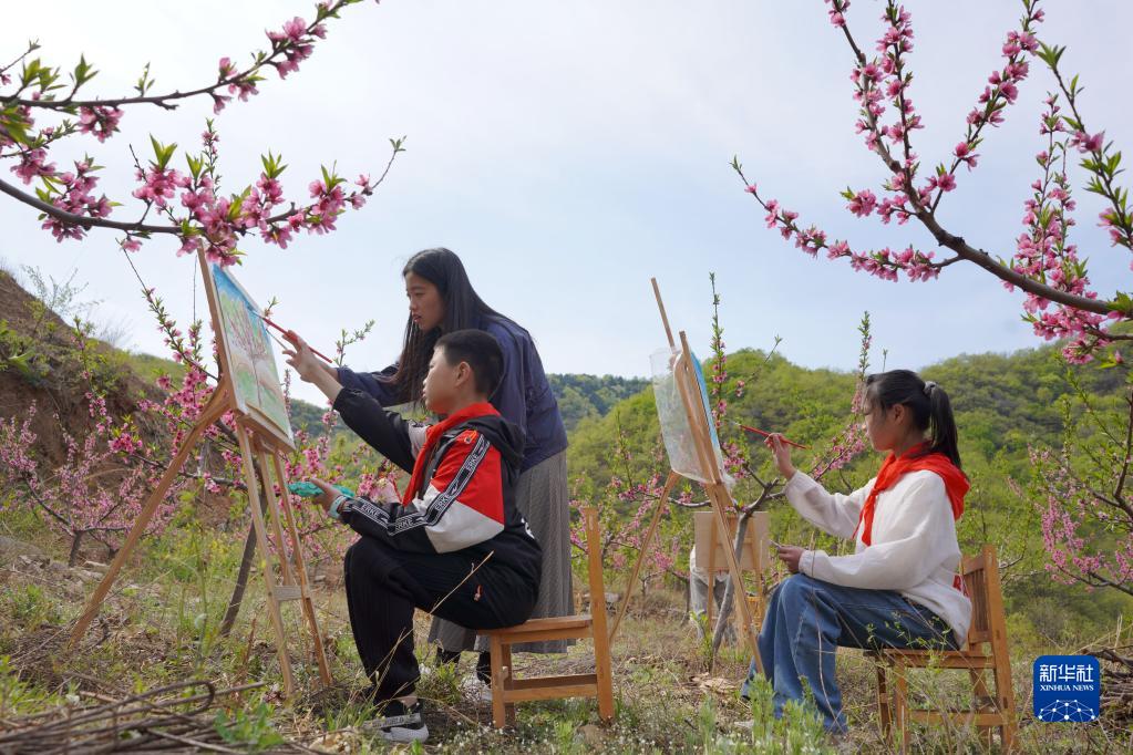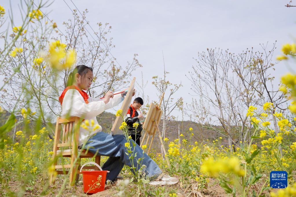 当日,河北省邢台市内丘县獐么中心小学开展“户外课堂”主题活动,组织美术社团的学生来到户外写生,用画笔描绘春日美景。