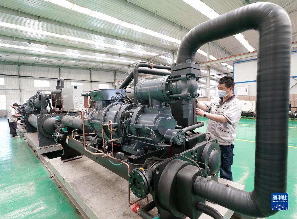 5月27日,工人在石家庄晋州一家制冷设备企业的生产车间工作。