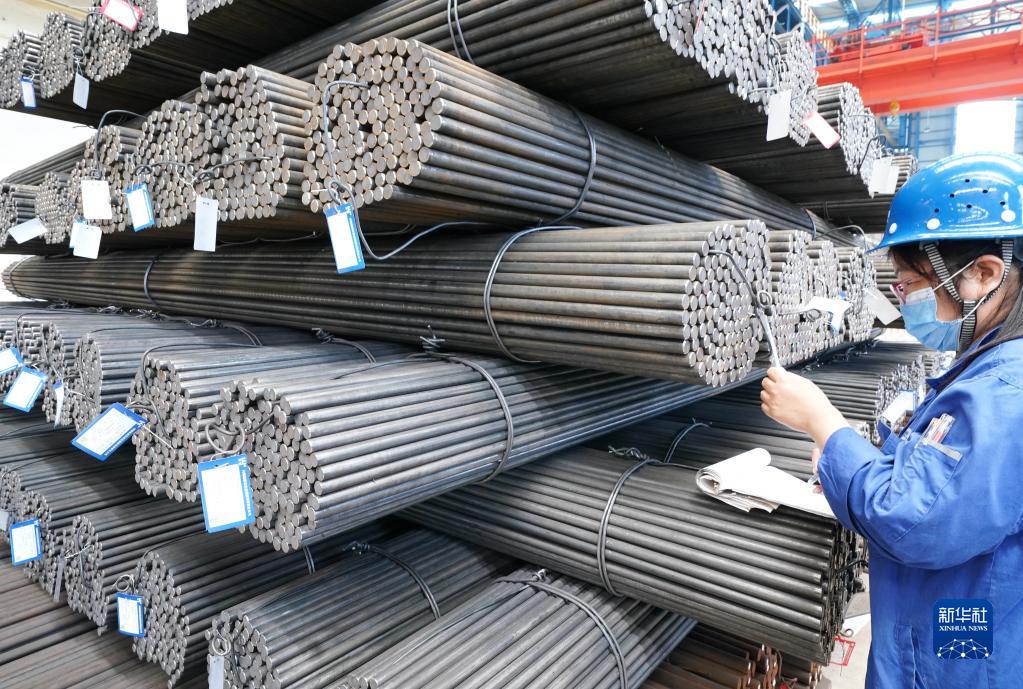 5月28日,工人在位于石家庄市井陉矿区的河钢集团石钢公司成品车间核验棒材编号。新华社记者 杨世尧 摄