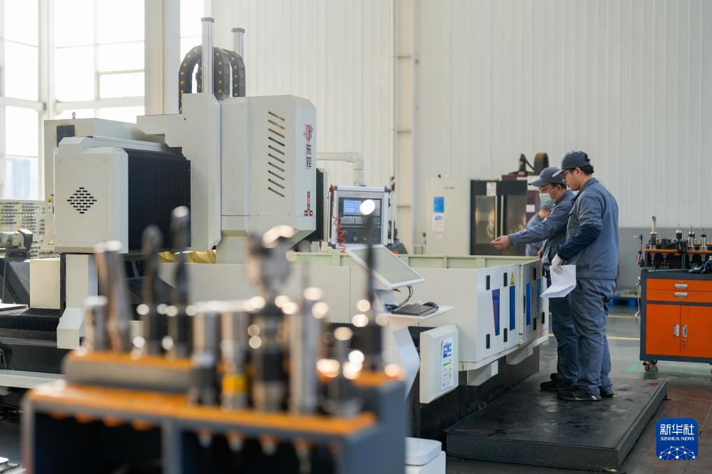 2月18日,工人在唐山百川机器人共享智能制造工厂内加工机器人零部件。