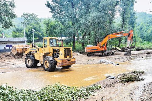7月28日,阜平县交通运输局组织人员抢修柳树底村水毁道路。本报记者 王伟摄