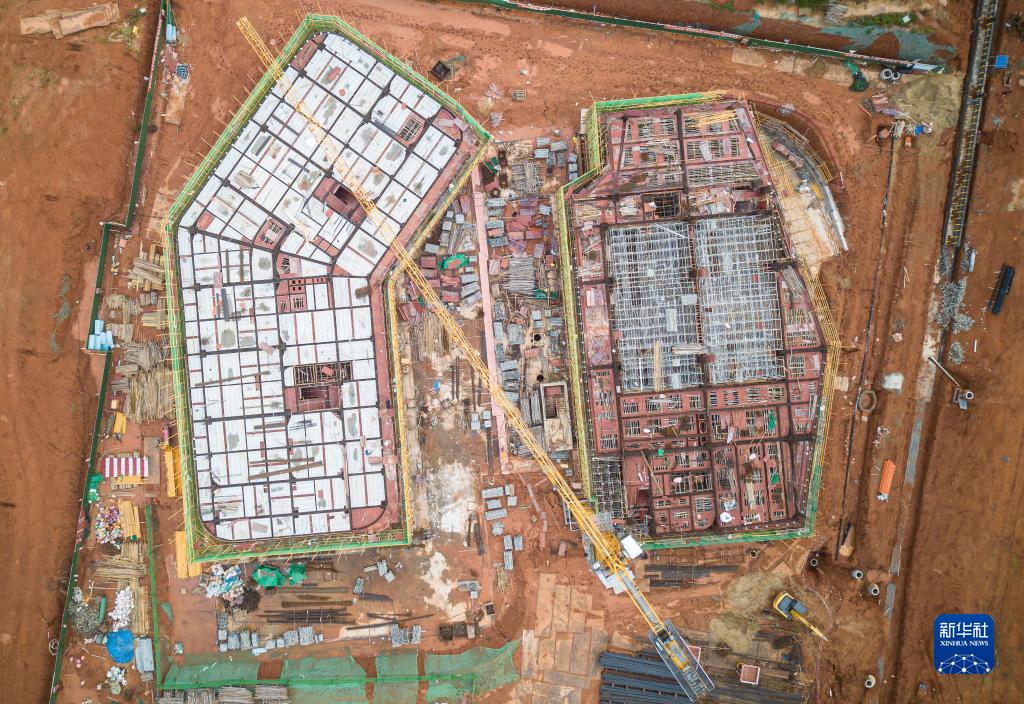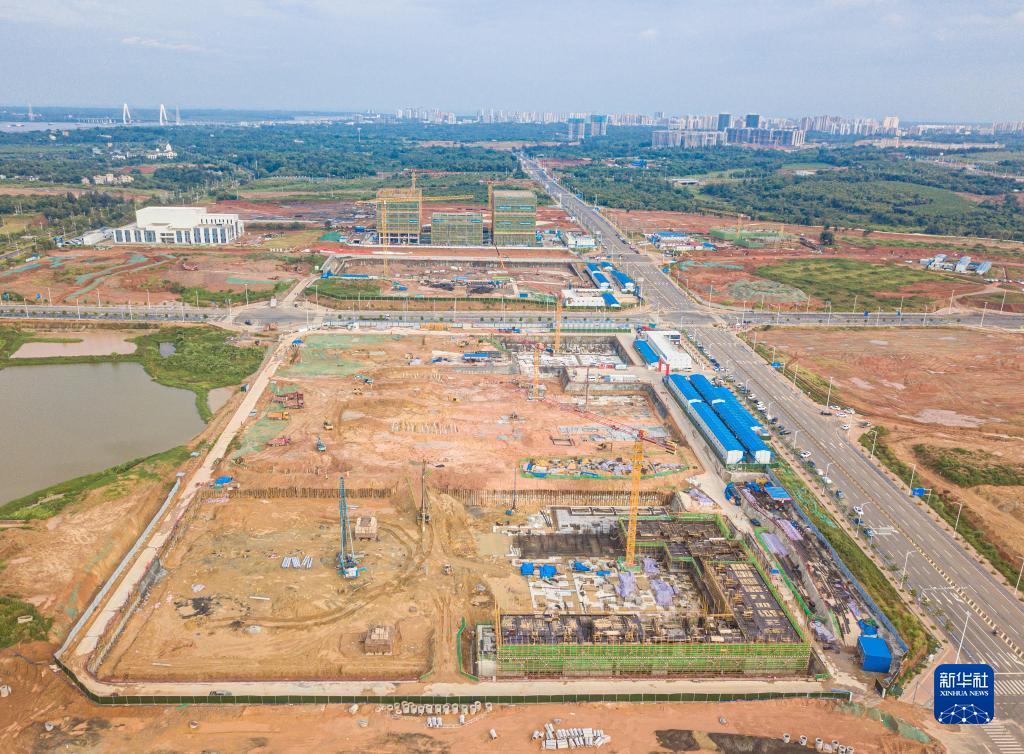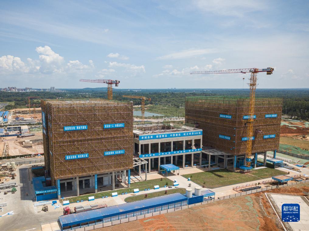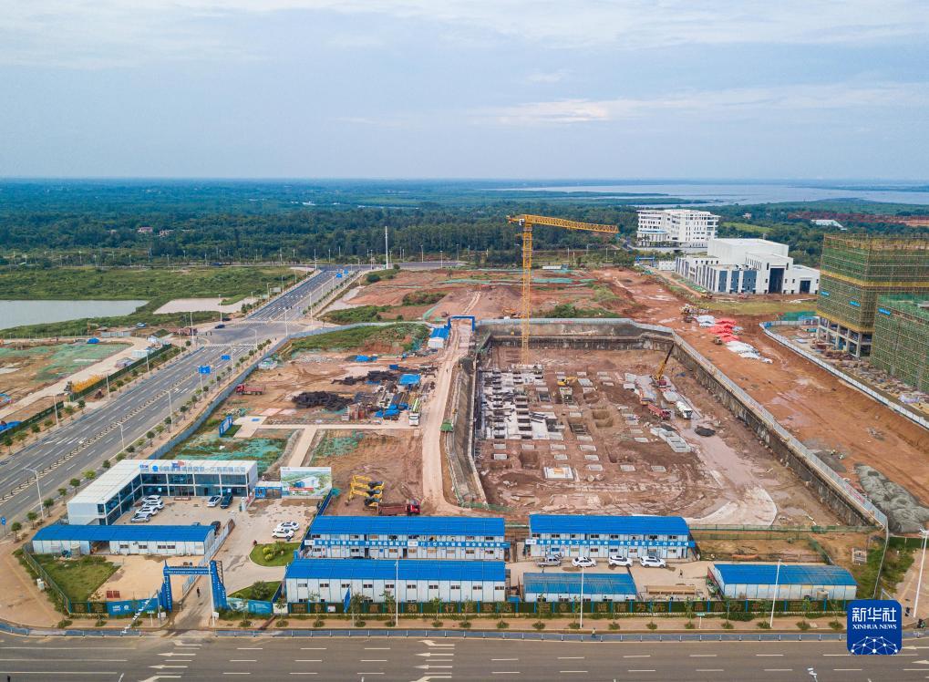 这是在海南文昌国际航天城拍摄的建设中的卫星总装测试厂房项目(无人机照片,7月15日摄)。