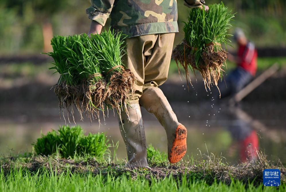2月20日,海南省白沙黎族自治县牙叉镇的农民在搬运秧苗。
