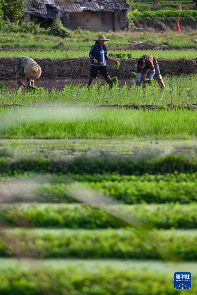 2月20日,海南省白沙黎族自治县牙叉镇的农民在插秧。