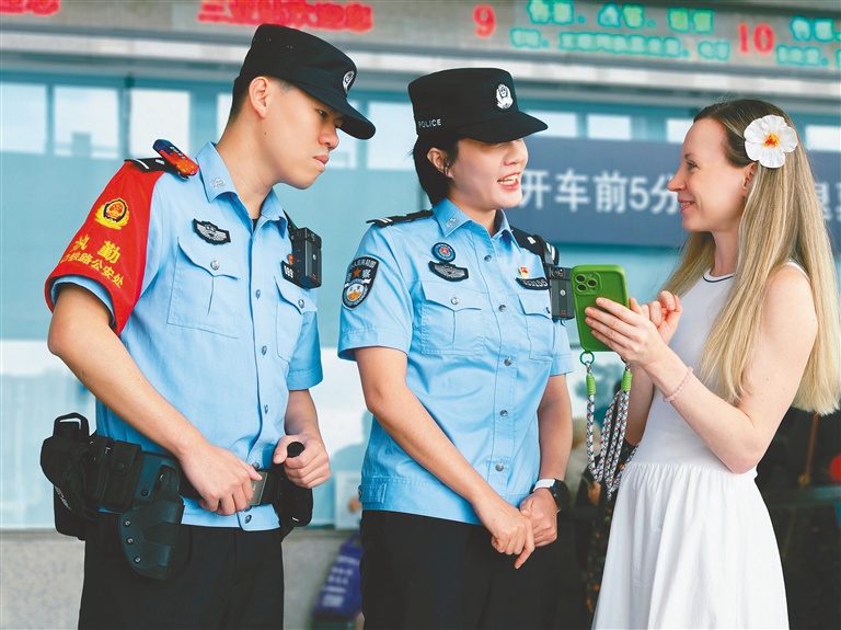 今年春运期间,三亚入境旅游市场持续升温。针对外籍旅客不熟悉出行流程、语言沟通不畅等难点,近日,海口铁路公安处三亚站派出所推出暖心服务举措,在购票窗口、安检口、候车专区等区域,专门设置“双语服务岗”,抽调精通英语的骨干民警值守,为旅客提供购票指导、乘车指引、咨询解答等服务。