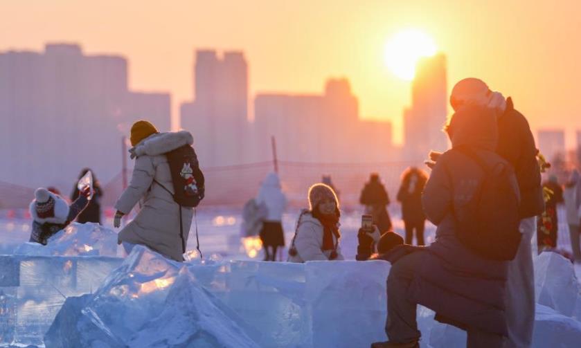 尔滨“钻石海” 浪漫赏落日