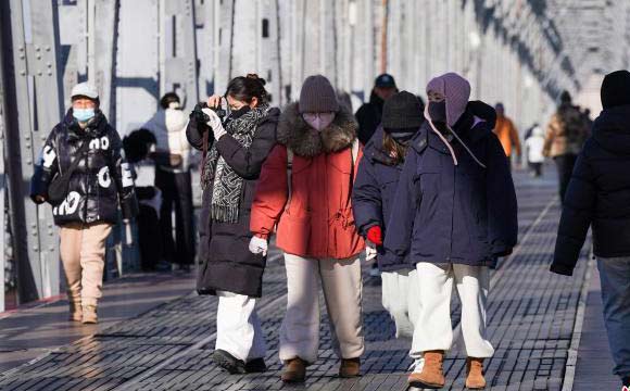 黑龙江哈尔滨气温持续走低 市民添衣出行
