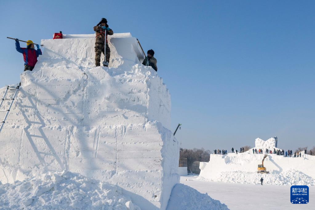 目前,哈尔滨太阳岛雪博会园区的各项筹备工作持续推进,部分雪雕景观已完成雕刻工作。