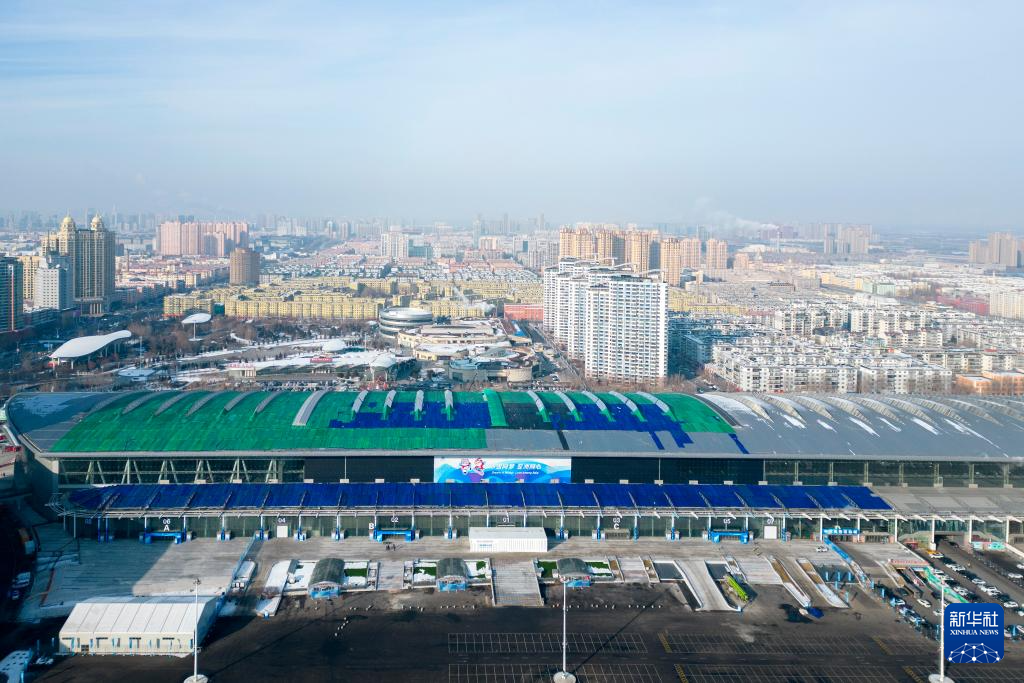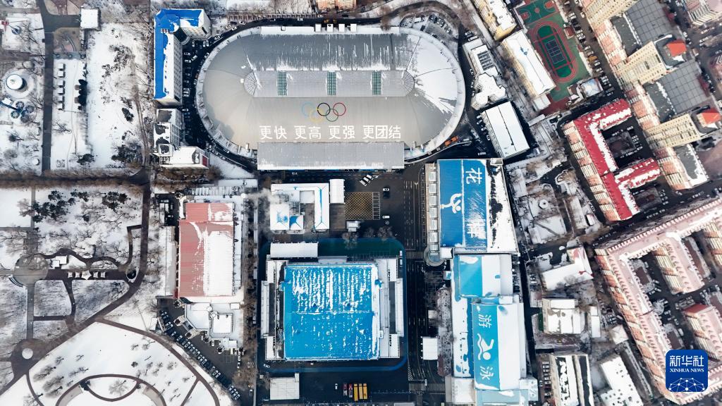 这是1月21日拍摄的黑龙江省冰上训练中心综合馆(短道速滑、花样滑冰比赛场馆)(无人机照片)。