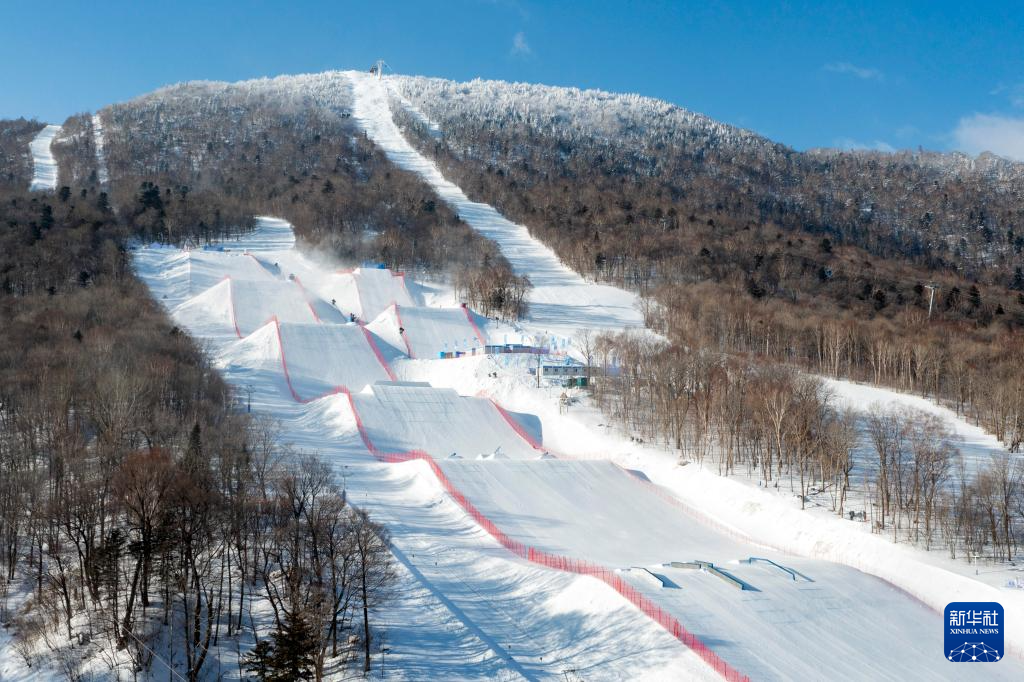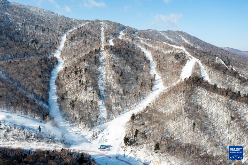 这是1月16日拍摄的位于亚布力滑雪场内的第九届亚冬会雪上赛区一角(无人机照片)。