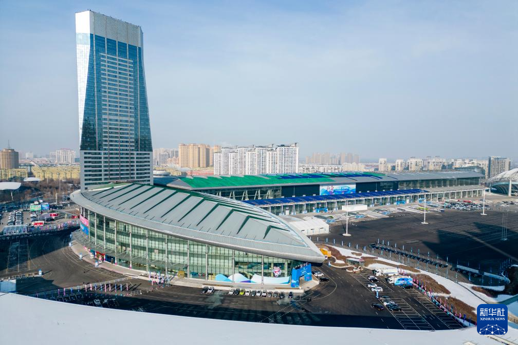 这是1月21日拍摄的哈尔滨2025年第九届亚冬会主新闻中心(无人机照片)。