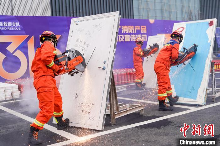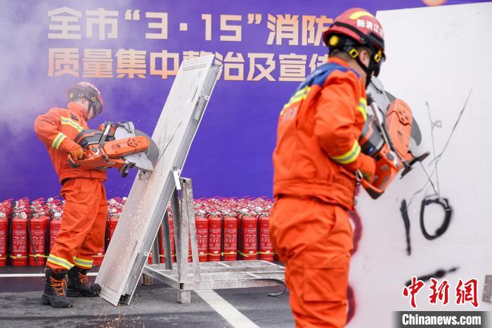 图为消防员销毁不合格防火门。中新社记者 赵宇航 摄