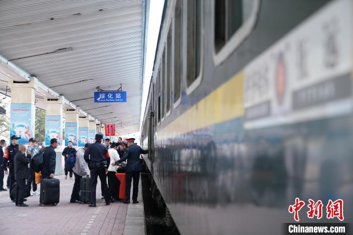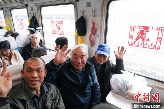 图为“插秧客”在专列上打招呼。中新社记者 赵宇航 摄