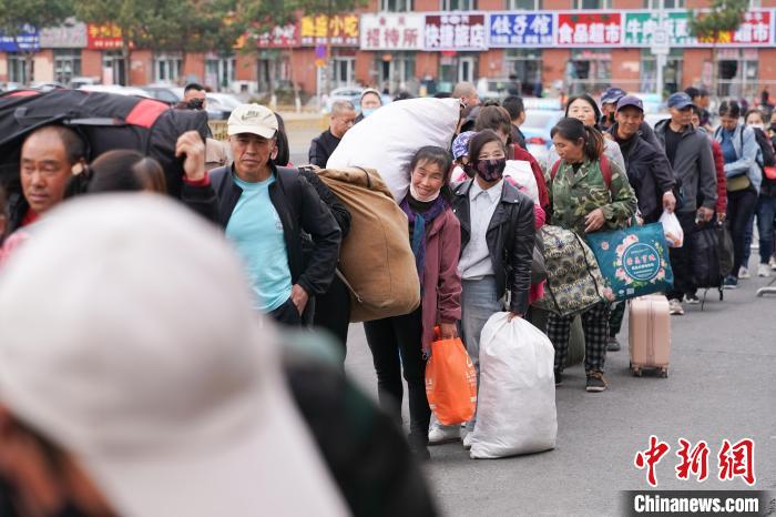 图为“插秧客”排队登车。中新社记者 赵宇航 摄