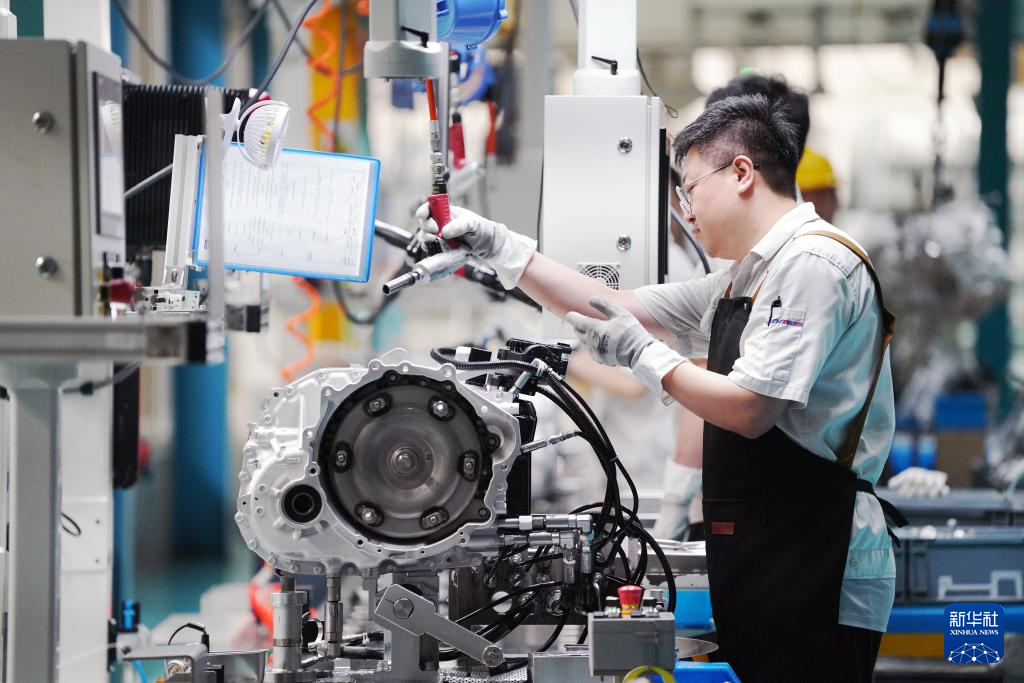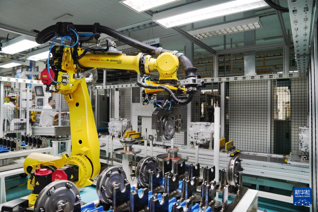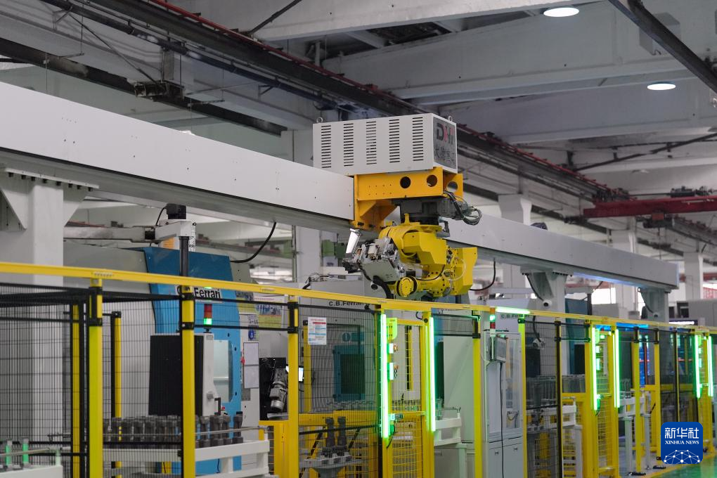 在哈尔滨东安汽车动力股份有限公司生产车间,智能生产设备对产品进行加工与组装作业(7月24日摄)。