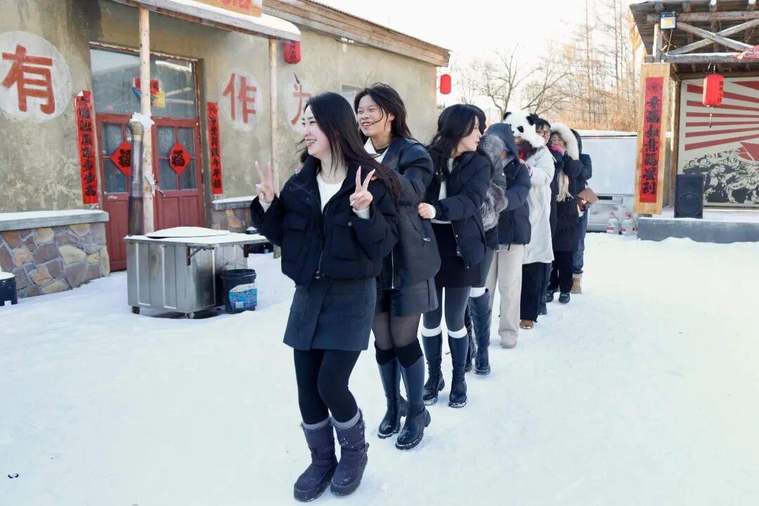 知青俱乐部内更是暖意融融、热闹非凡,兔子舞、贪吃蛇、蹦野迪等互动游戏点燃了全场热情。市民游客不分年龄辈分,在欢快的旋律中尽情舞动,各类趣味互动接连上演,现场欢呼声、笑声此起彼伏。这场跨越年龄的欢乐派对,巧妙融合知青文化的怀旧情怀与现代娱乐的时尚元素,让游客在轻松互动中释放活力、收获喜悦,沉浸式体验 “冰雪 + 娱乐” 的独特魅力,让寒冷冬日焕发炽热活力。