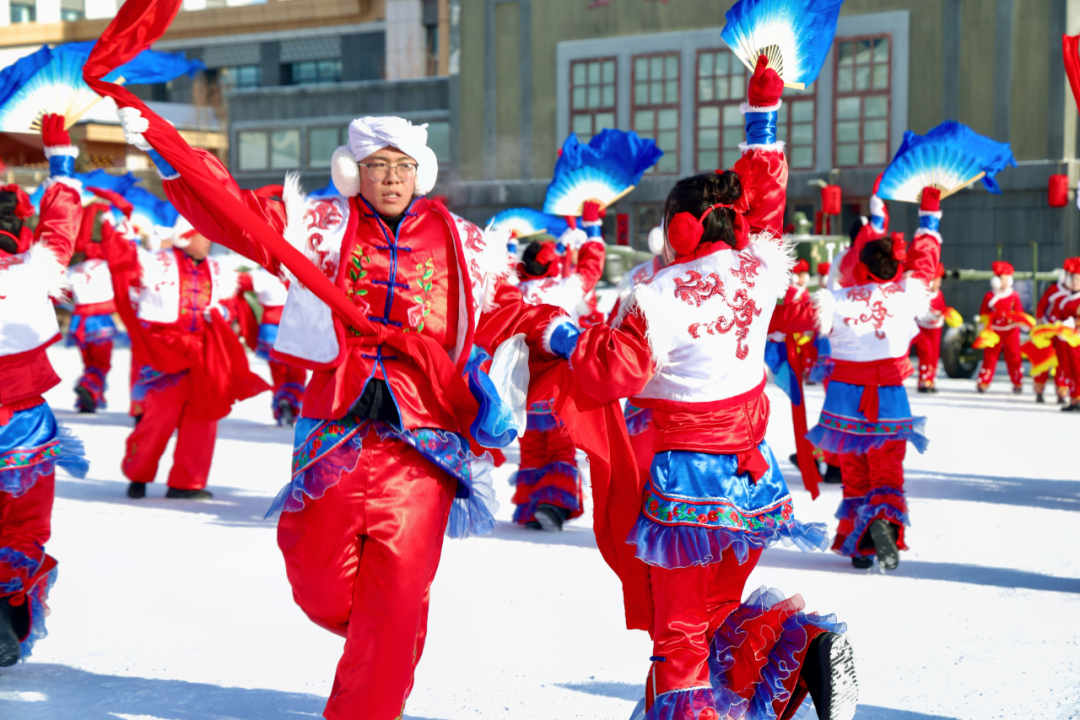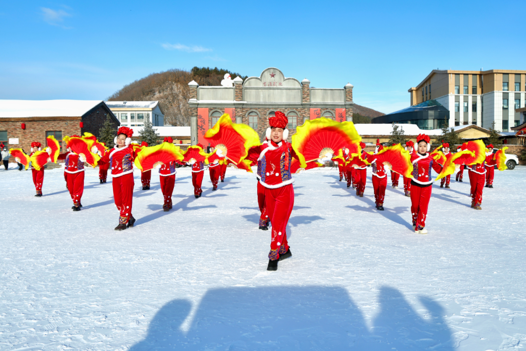 伴随着震天的锣鼓声与欢快的唢呐声,秧歌巡游队伍从知青民宿区整装出发,沿街区蜿蜒前行。百余名表演者身着五彩服饰,手持红绸、花扇翩翩起舞,东北大秧歌的热烈奔放与特色民俗表演相映成趣,吸引着沿途群众驻足观看。巡游队伍所到之处,欢声笑语洒满街巷,将新年的喜庆氛围延伸至小镇的每个角落,让游客切身感受东北年俗的独特韵味。