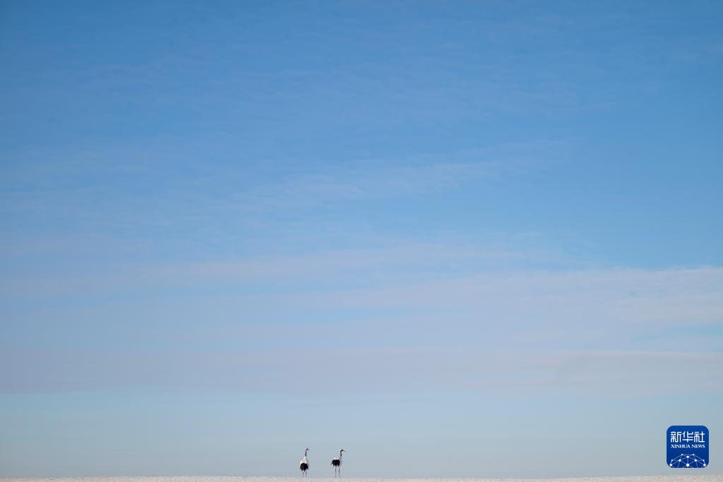 冬日时节,黑龙江扎龙国家级自然保护区内白雪皑皑,丹顶鹤在寒风中觅食,上演一幅鹤舞冬日的纯净画面。