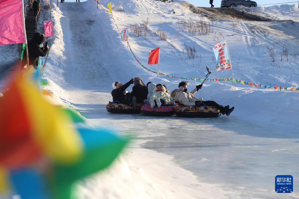 游客在漠河体验雪上娱乐项目(2025年1月15日摄)。