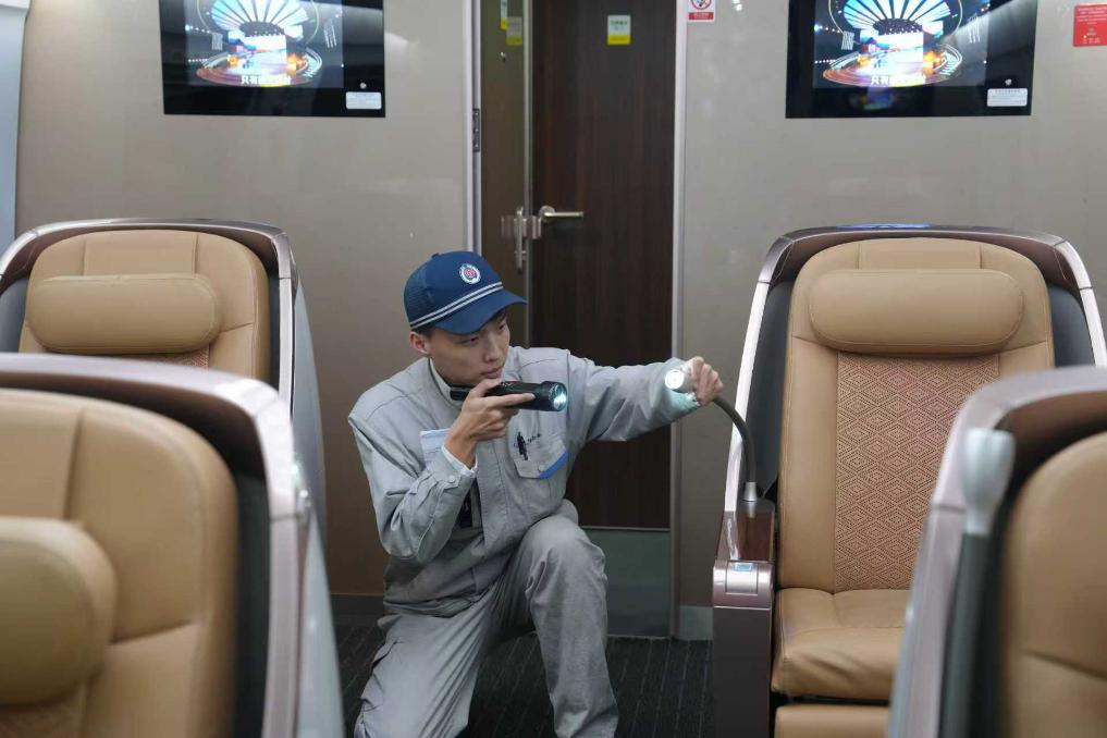 车厢内,“00后”机械师王子健正蹲在地上测试座椅插座,手指在按钮间快速移动。今年春节,王子健没有回家,但他觉得格外充实,“能为大家平安到家出份力,值了。”