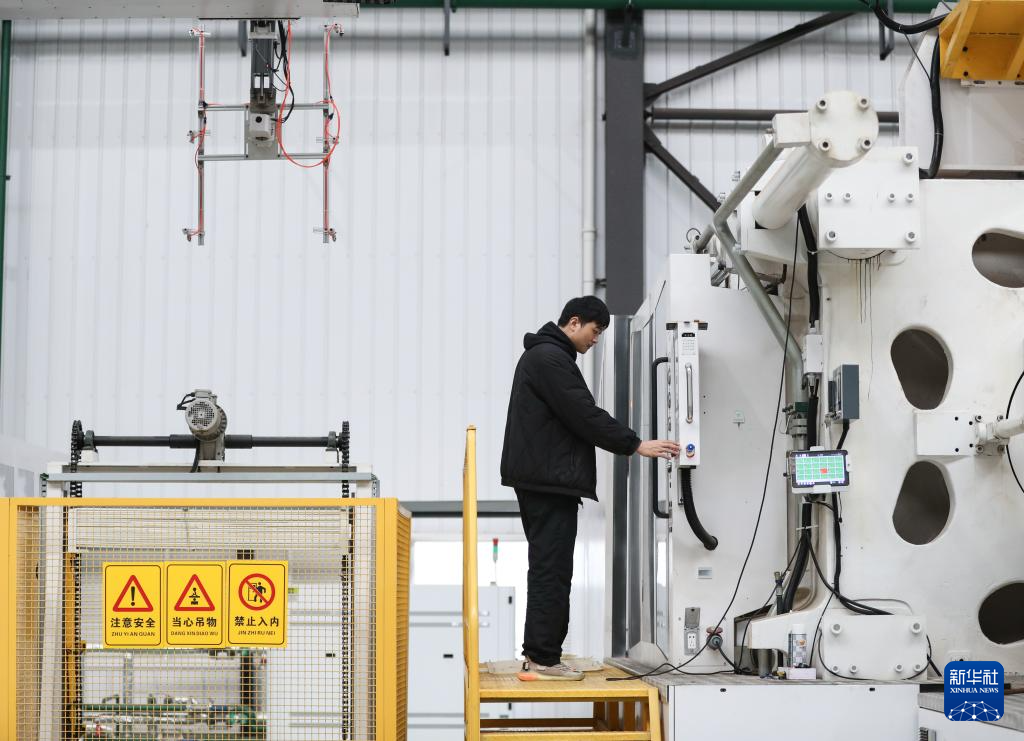 11月24日,一名工作人员在雅士林长沙(国际)蚕桑丝绸智造产业园的注塑车间操作设备。
