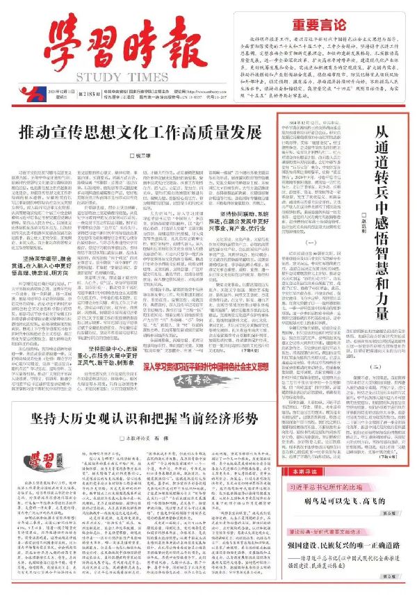 备豫不虞,为国常道。当前世界百年未有之大变局加速演进,世界进入新的动荡变革期,世界之变、时代之变、历史之变正以前所未有的方式展开。中华民族伟大复兴进入不可逆转的历史进程,但前路有风高浪急甚至惊涛骇浪,我们必须勇于进行具有许多新的历史特点的伟大斗争,准备付出更为艰巨更为艰苦的努力。党的二十届三中全会擘画了进一步全面深化改革、推进中国式现代化的宏伟蓝图,我们必须始终保持政治清醒和战略定力,坚定通往强国建设、民族复兴的光明方向,坚持前进的道路、方针和原则。唯如此,我们才能“又踏层峰辟新天,更扬云帆立潮头”。