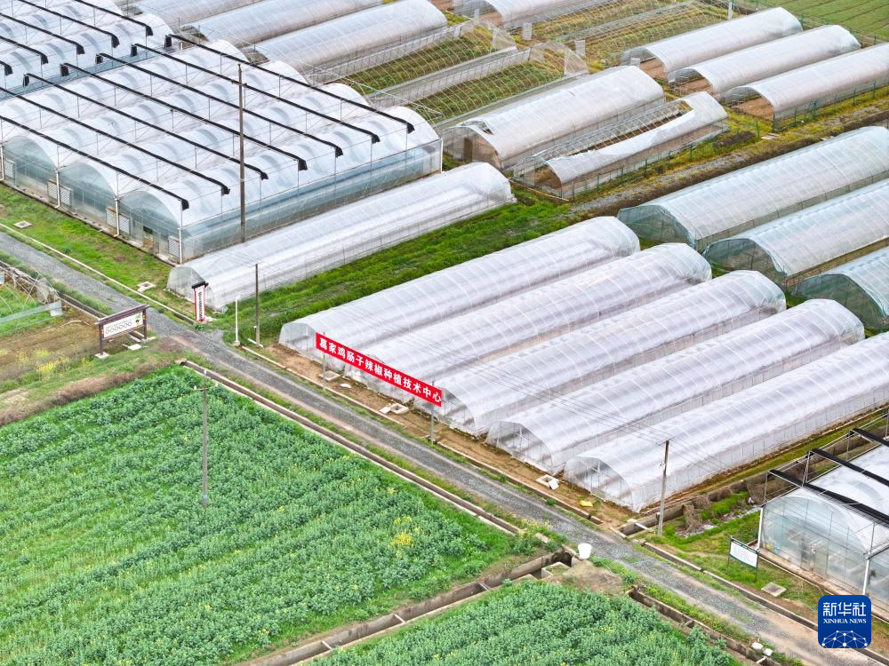 这是3月12日在湖南省浏阳市葛家镇拍摄的鸡肠子辣椒种植技术中心(无人机照片)。