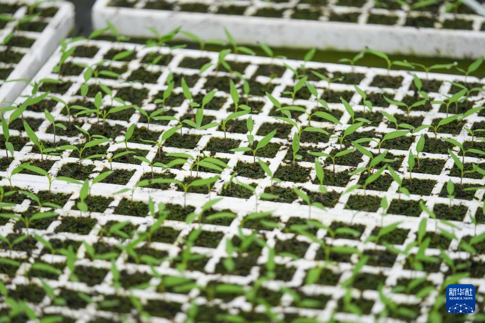 这是3月12日在湖南省浏阳市葛家镇的鸡肠子辣椒产业示范基地拍摄的辣椒苗。