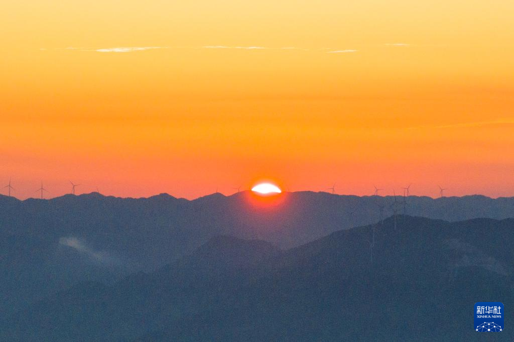 这是7月30日在湖南怀化雪峰山国家森林公园拍摄的日出景观(无人机照片)。