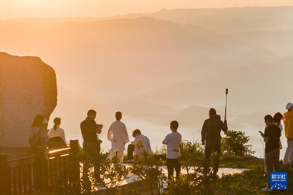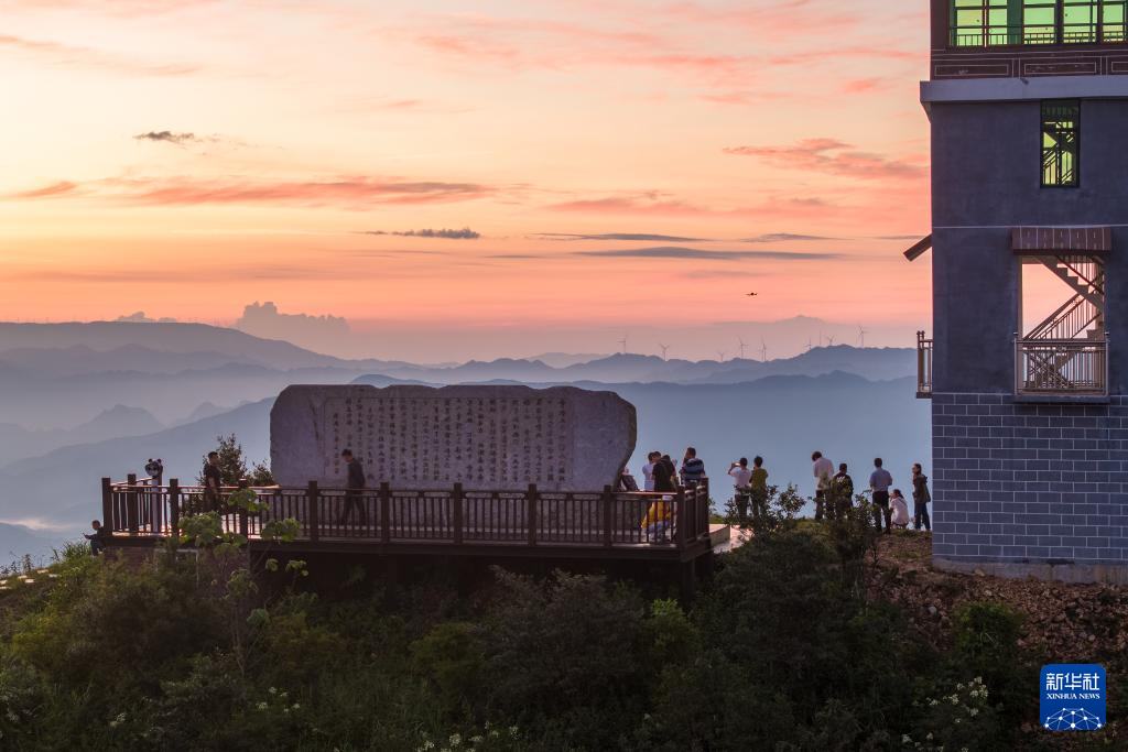 盛夏时节,湖南怀化雪峰山国家森林公园吸引了各地游客。一些游客赶在日出之前登顶,欣赏日出云海美景。