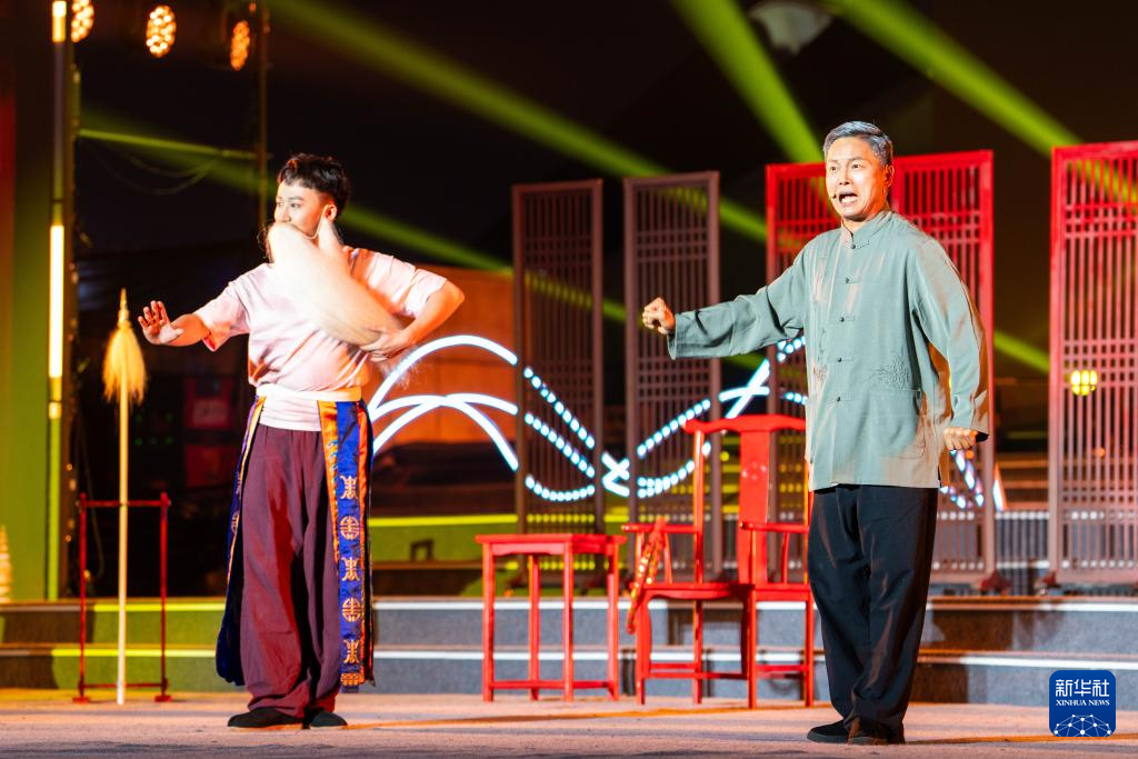 12月9日晚,演员在展演活动上表演戏剧小品《新定军山》。
