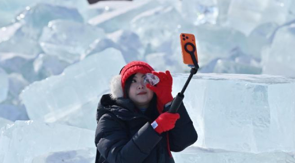 长春打造“蓝冰”景观 市民打卡体验“冰川世界”