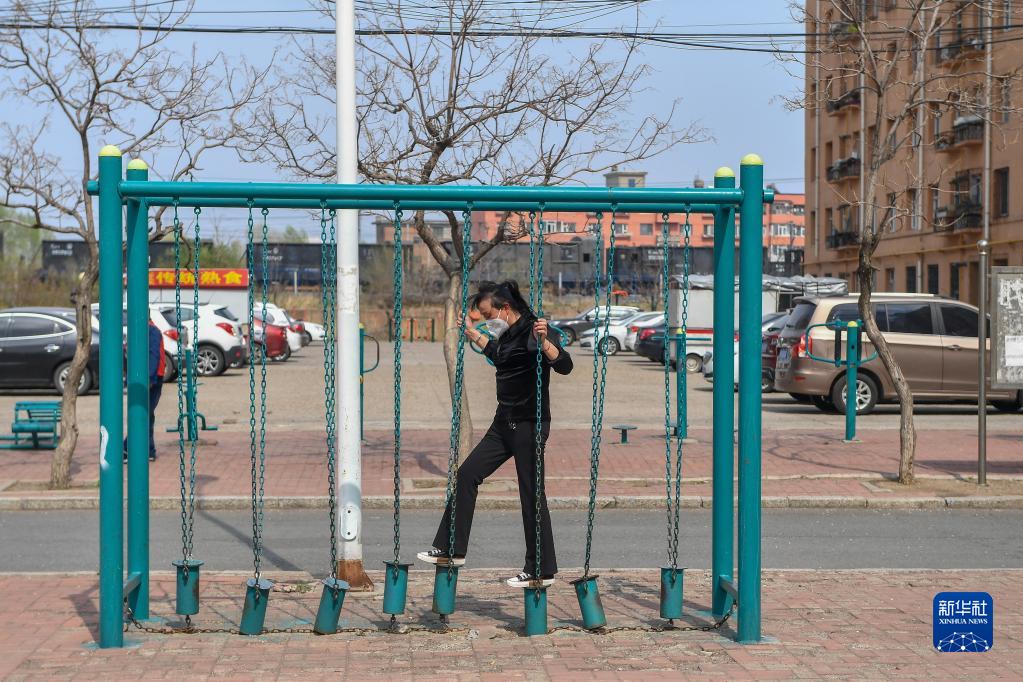 4月25日,在吉林市昌邑区新建街道,居民在户外活动。