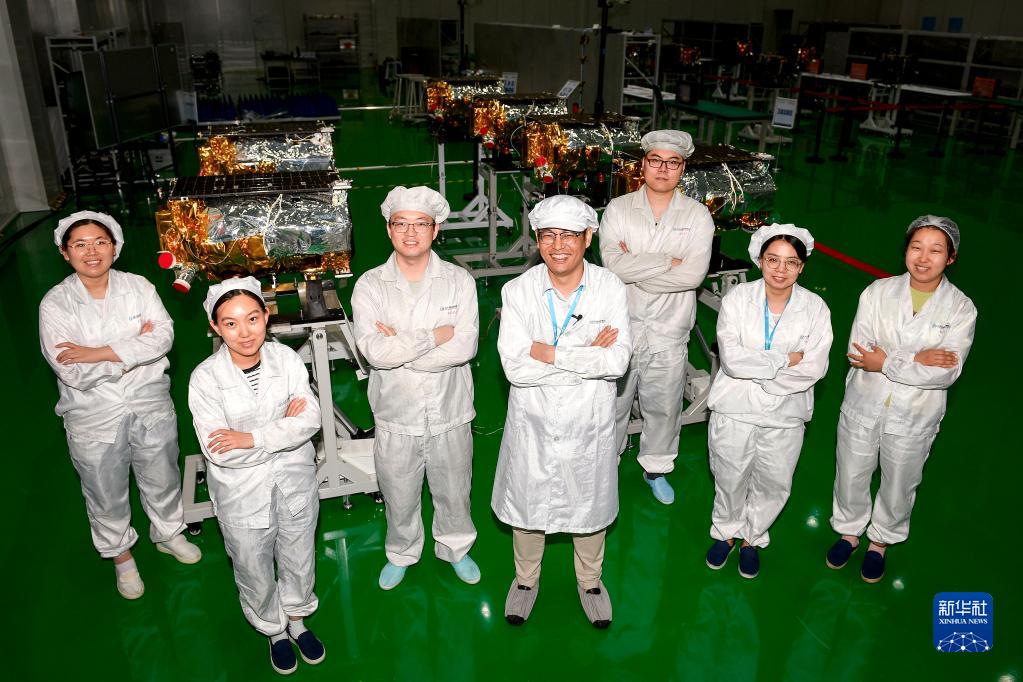 这是“吉林一号”高分03卫星部分研发调试人员(2022年8月3日摄)。新华社记者 许畅 摄
