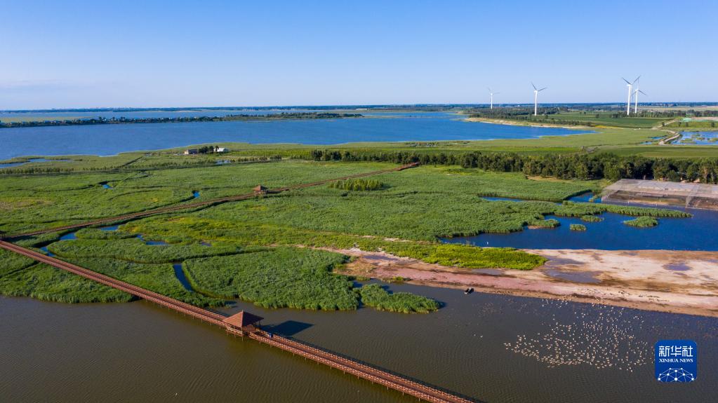 这是查干湖湿地(2020年7月20日摄,无人机照片)。新华社记者 张楠 摄