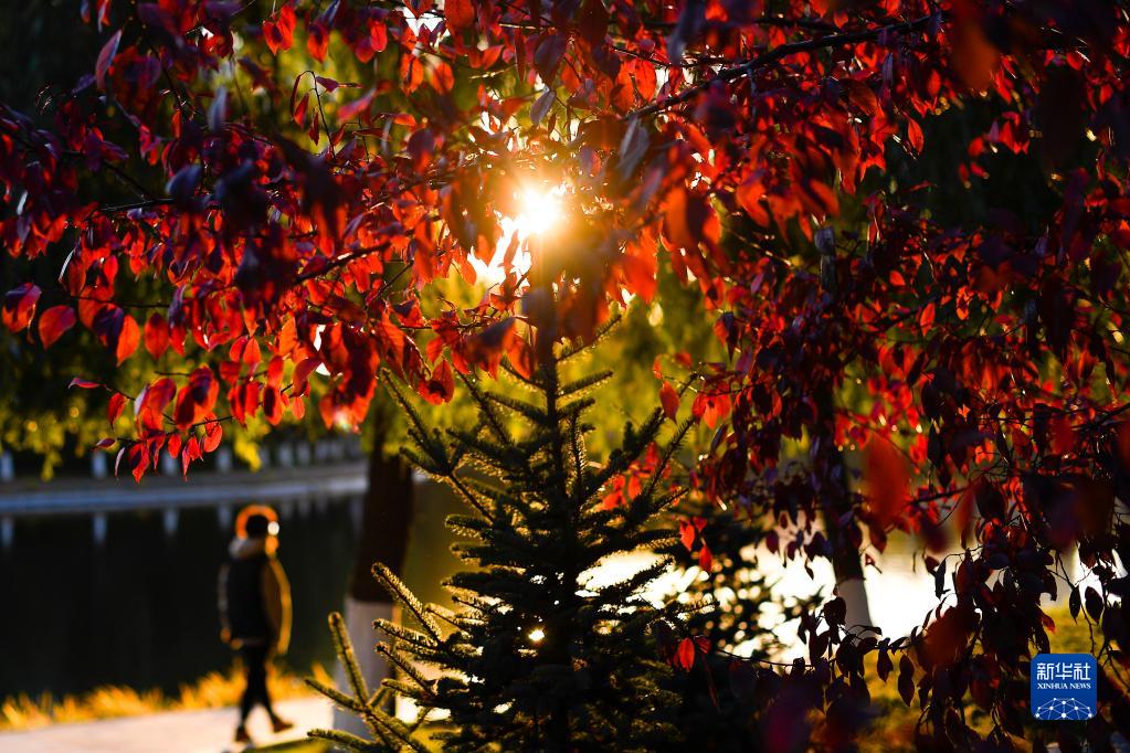 10月19日,市民行走在长春市友谊公园内。