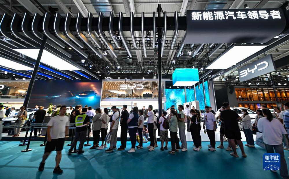 7月17日,观众在长春汽博会比亚迪品牌汽车展区参观。