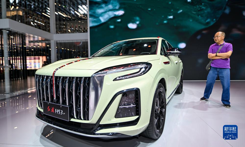7月17日,观众在长春汽博会红旗品牌汽车展区参观红旗HS3车型。