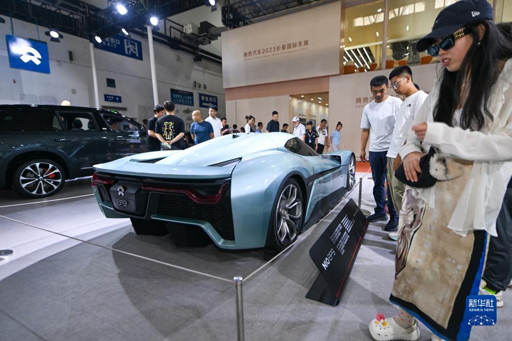 7月17日,观众在长春汽博会蔚来品牌汽车展区参观。