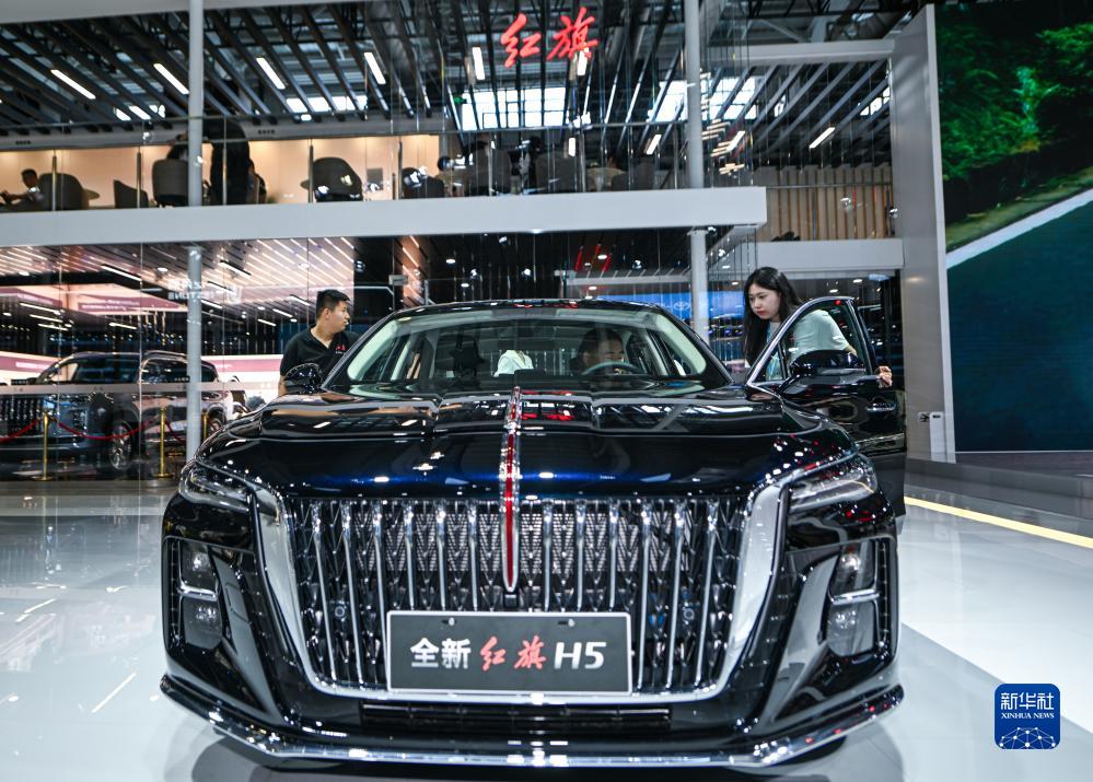 7月17日,观众在长春汽博会红旗品牌汽车展区参观红旗H5车型。