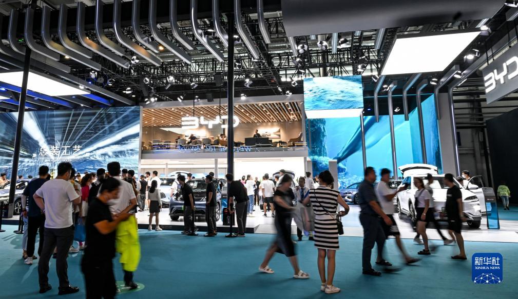 长春汽博会上的比亚迪品牌展位(7月20日摄)。