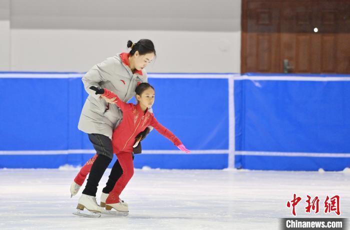 8月14日,在长春市冬季运动管理中心内,小运动员在进行花样滑冰训练。正值暑假,花滑小将们在教练们的指导下积极练习,为了自己的体育梦想拼搏。中新社记者张瑶 摄