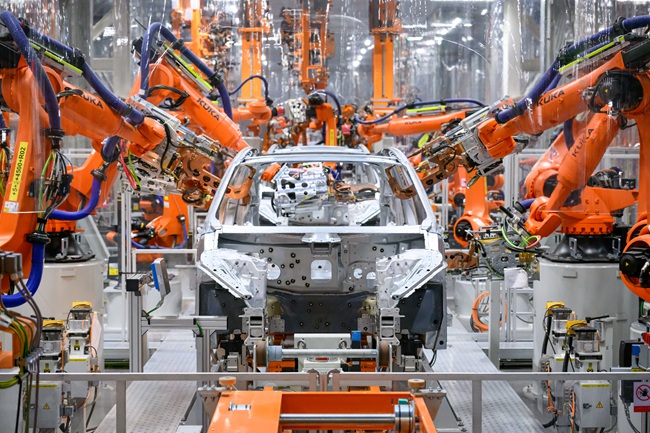 走进奥迪一汽新能源汽车有限公司焊装车间,科技感十足。智能生产线有条不紊地运行,高度自动化的机械臂占据“C位”,精准高效地组装零部件。