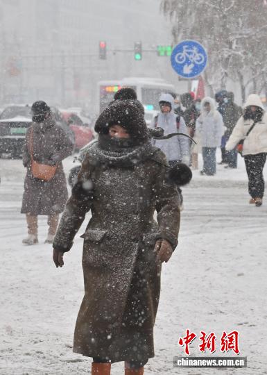 图为市民冒雪出行。中新社记者 张瑶 摄