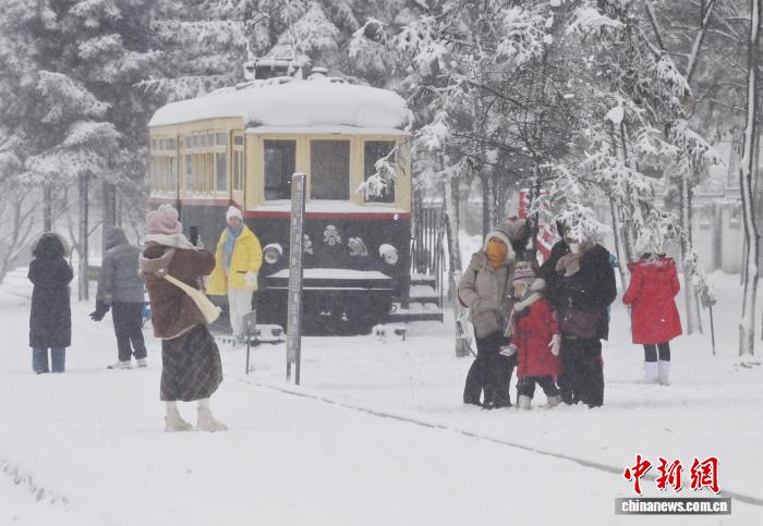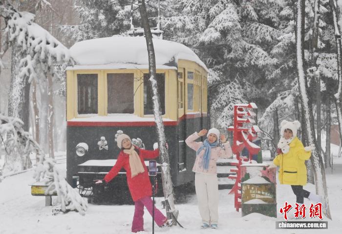 图为游客在雪中拍照留念。中新社记者 张瑶 摄